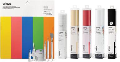 Starter Pack Smart Materials: Una selezione di materiali originali Cricut (Vinile, Termovinile, ecc.) per testare subito le potenzialità della macchina senza tappetino.