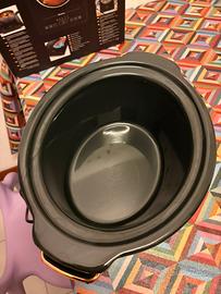 Croc Pot slow cooker 3,5 lt, coperchio in vetro con cerniera, pentola interna in ceramica. Impostazioni low, high e warm.