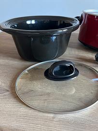 Pentola a cottura lente e bassa temperatura utilizzata poche volte. Pentola interna in ceramica nera e coperchio in vetro