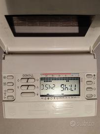 Cronotermostato digitale settimanale, a parete, colore bianco, alimentazione a batterie 3x1,5V (AAA). Installazione a parete o su scatola da incasso 3 moduli standard. Con contatto per comando caldaia/valvola.