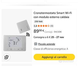 Vendo per acquisto errato, cronotermostato smart WiFi con modulo esterno caldaia, completo di scatola originale e del suo manuale di istruzioni, mai utilizzato, comprato come potete osservare in foto quasi 90€