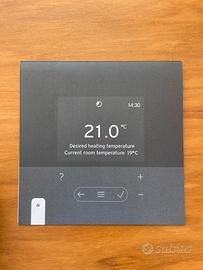 Si vende cronotermostato modulante compatibile con caldaie Hermann Saunier Duval con sistema eBus, completo di manuale d'uso in italiano. Interfaccia touch screen con pannello LCD retroilluminato, design elegante e raffinato, assistente all'installazione per la programmazione degli orari di riscaldamento (disponibili fino a 12 fasce orarie). Presenta un sensore ambiente e regola costantemente la temperatura dell'acqua circolante nella rete di riscaldamento, migliorando le prestazioni energetiche del generatore.