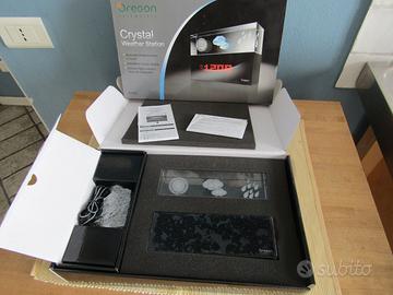 CRYSTAL WEATHER STATION OREGON BA 900. MAI Utilizzata. E' la prima Stazione Meteorologica con icone tridimensionali realizzata con laser nel cristallo. Illuminazione delle icone meteo. Massima precisione dell'orologio mediante autoregolazione per funzione radio-controllo. Sensore a infrarossi che consente di alternare la visualizzazione di ora e temperatura interna tramite movimento della mano. Display retroilluminato con visualizzazione alternata di ora e temperatura interna. Alternatore incluso nella confezione originale. Il prodotto è NUOVO, tuttavia presenta il difetto della scheggiatura del pentaprisma di cristallo nell'angolo inferiore sinistro come mostrato nell'ultima foto. Fortunatamente risultando però nella parte posteriore non si nota affatto. Potete anche contattarmi al 349.1574288 per ulteriori informazioni. Prezzo NON trattabile.