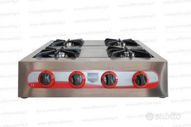 Struttura in acciaio inox, bruciatori in alluminio. Dotato di quattro griglie poggia pentola singole in ghisa. L'intensità della fiamma è regolabile grazie alle manopole posizionate frontalmente. La distanza tra i bruciatori permette di utilizzare pentole di elevato diametro.