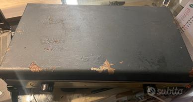 Cucina a 2 fuochi da campeggio perfettamente funzionante Il coperchio superiore presenta qualche segno di ruggine come da foto Interamente in metallo Misure 49X28cm altezza 9 cm Per info non esitate a contattarmi