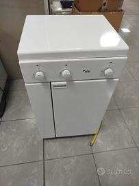 vendesi piccola cucina a gas 3 fuochi,colore bianco,con coperchio e vano sottostante per bombola o altro..misure 41,5x48x h 87 cm