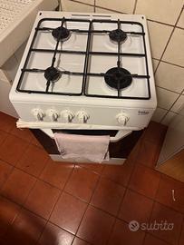 Cucina a gas a libera installazione beko csg42009dw Bianca , gas con 4 fuochi e forno a gas con grill, priva di coperchio superiore ottima condizione usato pochissimo