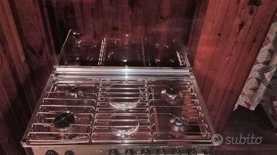 Cucina 4 fuochi + 2 piastre elettriche + forno in acciaio con coperchio in vetro - a metano e/o bombola gas