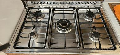 Cucina a 5 fuochi con forno in acciaio inox con coperchio in vetro. Perfetta.