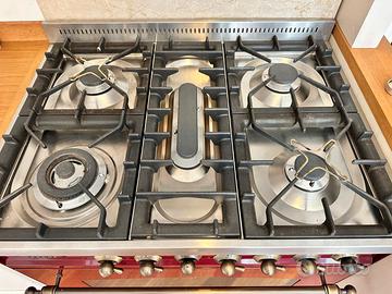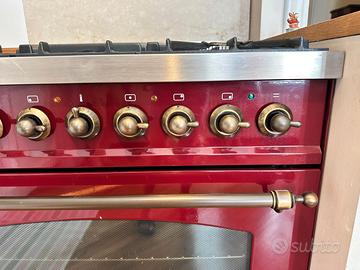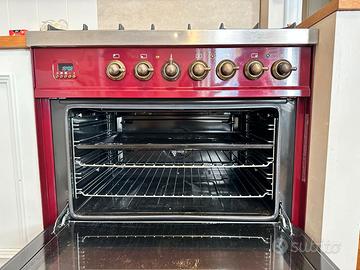 **RIBASSATO - Bellissima cucina a gas Ilve a 5 fuochi rossa, ottimo stato, dotata di accessori. Larghezza 90 cm.