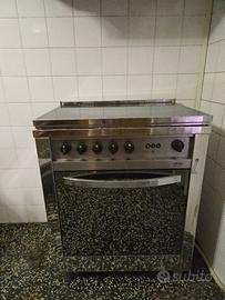Cucina a gas Lofra, cromata a specchio, comprensiva di quattro fornelli e forno.