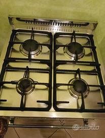 vendesi cucina a gas LOFRA MOD MB66GV 4 fuochi in acciaio inox a specchio griglie in ghisa forno a gas grill elettrico luce ventola termostato e timer in perfette condizioni qualsiasi prova ovviamente elettrica completa di teglie facile da caricare con parcheggio al portone e ascensore e ho anche il carrello entra anche in una macchina misure: 60 x 60 x 90 H
