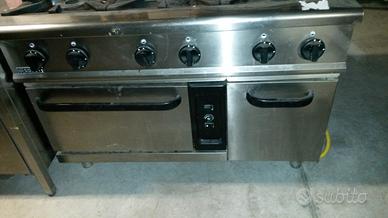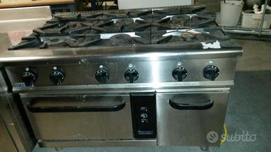Cucina professionale a Gas con forno n. 6 fuochi. Marca Soget modello s91105. misure cm 90 x 88 x 120. Richiesta euro 950. Mobile armadiato in acciaio inox con tre casetti e ante scorrevoli cm 90 x 85 x 150 richiesta 430 euro