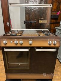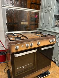 Design vintage color bronzo/marrone metallizzato, con 5 fuochi e doppio forno.