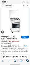 Cucina a gas Tecnogas 4 fuochi con forno elettrico. profondità 53 cm larghezza 60 cm altezza 89 cm compresi i piedini Nuova Ritiro al domicilio