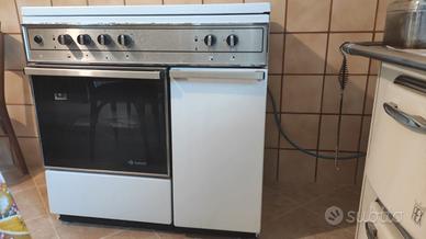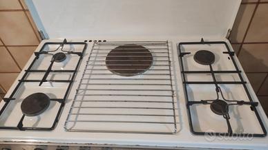 Cucina a gas Indesit; 4 fuochi, forno GPL + piastra elettrica centrale.
