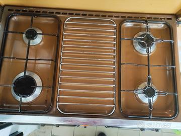 Cucina economica comodissima, perfettamente funzionante con bombola GPL per i quattro fuochi e per il forno sempre a gas, ma che ha comunque anche il grill elettrico.