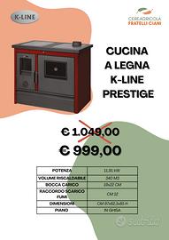 La Stufa Cucina a Legna K-line Prestige Con Forno è la soluzione ideale per Cucinare e per riscaldare il tuo ambiente circostante, in modo naturale ed in economico.