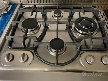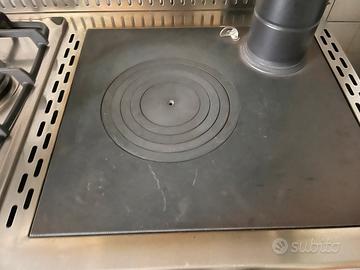 Composta da piano cottura 4 fuochi a gas con elettrovalvola piu forno elettrico ventilato autopulente. Con stufa a legna ventilata e forno. KW 5,5