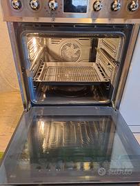 Smeg cucina ad induzione modello Symphony C6IMX2 Piano cottura a induzione di grande qualità con potenza modulabile 1200-2300W (4 zone impostabili con valori da 1 a 9 + turbo, 1 multi zone), acciaio inox, forno ventilato con funzione grill e turbo, timer programmabile, sistema molto efficiente e preciso, ampia gamma di modalità di cottura cibi. Migliora molto l'esperienza di cottura rispetto alla cucina tradizionale a gas. Condizioni perfette, forno utilizzato pochissimo, molto efficiente. Nessun segno o graffio sul vetro temperato del piano induzione. Manuali ed accessori originali. Limiti di consumo impostabili 3,3-4,5-7,4KW. Acquistato a gennaio 2024 (1130€), in garanzia fino a gennaio 2029. Vendesi per trasloco e mancanza di spazi in nuova abitazione (blocco cucina già presente). Disponibile per qualsiasi prova.