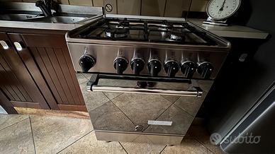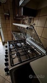 Cucina a gas con forno elettrico con manopole programmi, temperatura e timer, coperchio copri-fornelli in vetro, perfettamente funzionante e poso usata Misure L 59 P 56 + 3 H 89 Griglia e leccarda nera da forno comprese