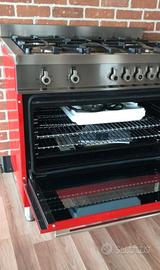 Cucina rosso passione marca Bertazzoni. 6 fuochi, forno da 90 cm elettrico, 9 funzioni. Bruciatori in ottone griglia in ghisa.