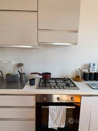cucina bianca di mondo convenienza, con rifinitura argentata compresa di tutti gli elettrodomestici usata ma in buono stato. larga 60 lunga 3.11 m