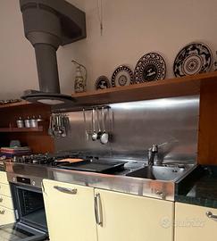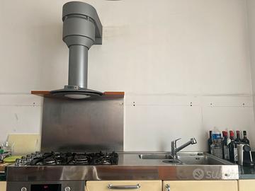 - piano da 180 cm in acciaio inox, che comprende fornello a gas su 5 punti e due lavelli, con annesso miscelatore.