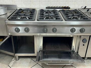 vendo cucina professionale marca ATA ,ottime condizioni perfettamente funzionante,comprende cucina sei fuochi con forno,bollitore due vasche compreso di cestelli fry top liscio e rigato e friggitrice due vasche da 20 litri cadauna,possibilità di spedizione e tutto fatturabile