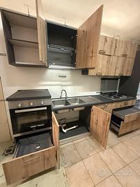 vendo una cucina completa, la cucina è stata fatta sua Falegname fa su misura misura 3,60 m con Colonne Frigo, incastro Grandi colonna forno lavastoviglie fornelli cinque fuochi lavandino con rubinetto la coscienza si trova piano terra possibilità fare anche la consegna anche il montaggio che si tratta via con tutto