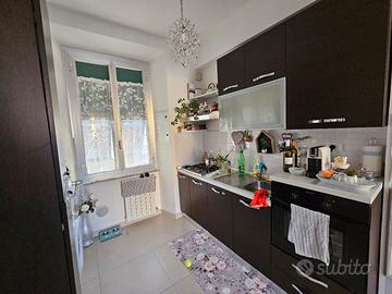 Cucina con forno e frigo Indesit, piano cottura a gas, lavello, cappa filtrante. Tutto funzionante, buone condizioni, lievi segni di usura. Misure: Lato frigo 150 Lato forno 230 Pensilina alti 95