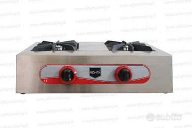 Struttura in acciaio inox, bruciatori in alluminio. Dotato di due griglie poggia pentola singole in ghisa. L'intensità della fiamma è regolabile grazie alle manopole posizionate frontalmente. La distanza tra i bruciatori permette di utilizzare pentole di elevato diametro.