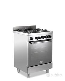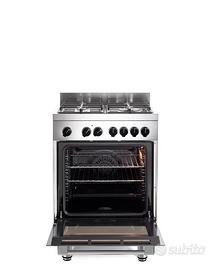 Cucina a gas con forno elettrico, 60x60 cm, Inox, 4 fuochi Cucina a libera installazione 60×60 cm 4 bruciatori gas di cui 1 doppia corona Robuste griglie in ghisa Forno elettrico da 74 l netti con telai laterali a 7 livelli Tipo di piano: a gas Tipo di accensione: Accensione elettronica integrata manopole Numero totale di fuochi: 4 Doppia corona: Si Numero doppia corona: 1 Numero griglie del piano: 2 Materiale griglie piano: Griglie in ghisa Materiale del piano: Piano in inox Posizionamento comandi: Comandi frontali Tipo vetro porta: Vetro doppio Piedini regolabili: Si Tipo di forno: Forno elettrico Volume in litri: 74 Ventilazione: Si Temperatura massima forno: 250 Termostato: Si Grill: Si Numero di funzioni cottura: 9 Classe consumo energetico: Classe energetica A Numero griglie forno: 1 Numero teglie/leccarde forno: 1 Altezza-mm: 890 Larghezza (mm): 600 Profondità (mm): 600 Peso (Kg): 56,1 Vetro porta: Doppio NUOVA - MAI UTILIZZATA! Acuistata ma mai messa in funzione. Con pellicola protettiva Ritiro a carico dell'acquirente.