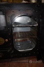 La piastra superiore in ghisa consente di cucinare direttamente sul piano, mentre il forno integrato permette una cottura naturale e uniforme. L’interno del forno è in buono stato e perfettamente utilizzabile. Il vano fuoco è strutturalmente integro e garantisce un’ottima resa termica.