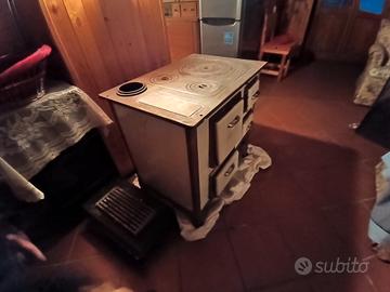 Vendo bellissima cucina economica a legna vintage, perfetta sia come elemento d'arredo per rustici, baite o case in stile shabby chic, sia per un utilizzo pratico. Caratteristiche principali: • Materiali: Piano cottura superiore in ghisa con i classici anelli removibili (cerchi) di diverse dimensioni e corpo in metallo smaltato bianco. • Componenti: Dotata di forno, vano camera di combustione, cassetto per la cenere e pratici sportelli con maniglie cromate originali, esclusi tubi. • Condizioni: La stufa si presenta in ottime condizioni estetiche vintage. Lo smalto è ben conservato (piccoli segni del tempo che ne attestano l'autenticità) e il piano in ghisa è integro. • Utilizzo: Ideale per riscaldare l'ambiente e cucinare contemporaneamente, regalando quel sapore unico ai cibi tipico della cottura a legna. Note: La stufa è attualmente smontata e pronta per il carico. Ritiro a carico dell'acquirente a Mongrando, BI.