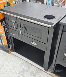CUcina a Legna in Acciaio 9kw con Forno ECONOMICA IN ACCIAIO Portalegna SOLO CONTATTI WHATSAPP O TELEFONO 3517302126 Caratteristiche: Ambienti riscaldati fino a 80 m² Ripiano superiore in ghisa e rivestimento in acciaio smaltato Forno con termometro per monitorare la temperatura Camera di combustione rivestita con mattoni refrattari Uscita fumi superiore 120-130 mm Certificazione ambientale 5 stelle