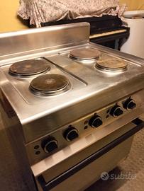 cucina elettrica professionale in acciaio inossidabile quattro piastre elettriche in ghisa, con manopole di controllo per regolare la temperatura e forno h 103 p 60 l 70