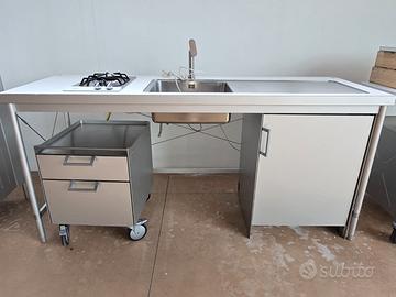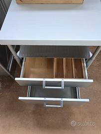 carrello laterale con piano lavoro, cassetto e con sportello per ulteriore spazio contenitivo