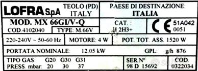 - 4 fuochi con ugelli per gas naturale;
