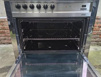 Vendo Cucina GAS marca LOFRA 6 Fuochi e Forno Professionale modello Maxima MXG96MFPI/V. In perfette condizioni, come da foto. Costo nuova 1699,00 euro. Utilizzabile a Metano o Bombola GPL(con un semplice cambio ugelli). Forno ELETTRICO VENTILATO MULTIFUNZIONE 10 Programmi con triplo vetro temperato. Display a led programmabile. Piastra Ad INDUZIONE doppia centrale. Accensione fornelli Piezoelettrica con valvole di sicurezza. Griglie dei fuochi in ghisa professionali. Binari per 5 teglie/griglie. Piedini regolabili. Copertura Fuochi in Cristallo Temprato. Misure: Larghezza 90cm Profondità 60cm Altezza 85cm (regolabile) Possibile qualsiasi prova sul posto prima del ritiro. Disponibile, su accordo, trasporto a prezzo bassissimo. Possibile anche spedizione in Italia. Prodotto in pronta consegna. Per qualsiasi info contattatemi.