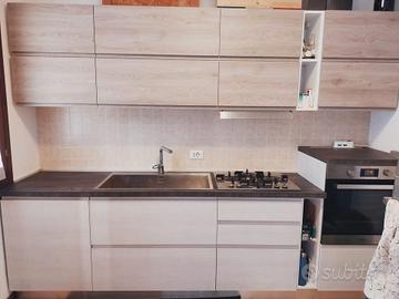 Vendo cucina Semeraro componibile acquistata ad agosto 2018 in perfette condizioni dotata di elettrodomestici Hotpoint Ariston classe energetica A e A+ (lavastoviglie e forno), cappa con filtro lavabile, rubinetto vasca unica con miscelatore franke (misure vasca: 80cm x 40 cm), e piano cottura a fiamma diffusa che permette un risparmio energetico del 30%. Inclusi libretti di istruzioni all’uso. Escluso frigorifero.