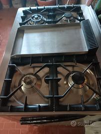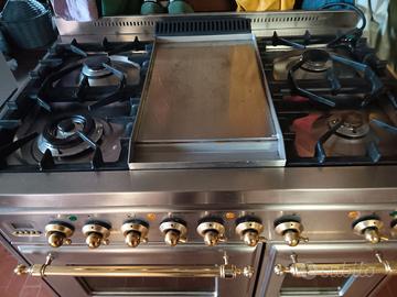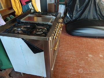 -ILVE Majestic 90 cm versione inox , 4 fuochi + fry-top centrale, doppio forno elettrico, ottimo stato con ancora film protettivo originale sulle pareti prezzo richiesto 1500 €.