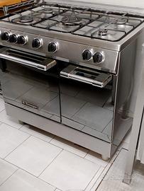 Cucina in acciaio inox semiprofessionale, forno a gas, vano porta bombola, 5 fuochi, perfetta. Ritiro e trasporto a carico dell'acquirente.