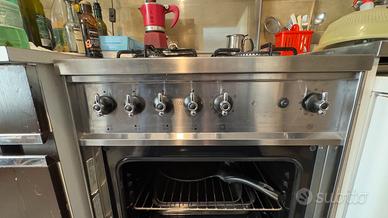 Cucina Indesit in acciaio inox con 4 fuochi a gas e forno a gas.