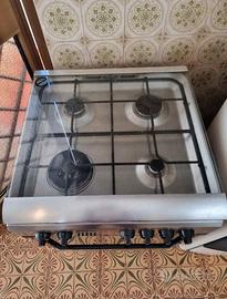 Piano cottura a gas con 4 fuochi e forno elettrico (capacità 59L). Forno elettrico. PIedini regolabili. In acciaio inossidabile.