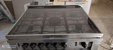 Cucina a 5 fuochi con forno a gas della linea professionale LOFRA. La cucina è perfettamente funzionante, sono state cambiate le cerniere dello sportello del forno da pochi mesi, gli ugelli dei bruciatori e controllato tutto il sistema di sicurezza delle valvole e quindi pronta per essere installata e utilizzata subito. Caratteristiche principali: Piano cottura con 5 fuochi a gas, incluso fuoco centrale ad alta potenza (ideale per wok e cotture veloci) Griglie in ghisa robuste e professionali Ampio forno a tutta larghezza con porta in vetro Struttura interamente in acciaio inox Elegante para schizzi/coperchio in vetro con supporti in metallo Comandi frontali semplici e intuitivi. Prezzo 350,00€ trattabili