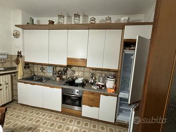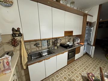 cucina lineare completa di elettrodomestici da incasso funzionanti: frigorifero con congelatore, piano cottura, forno, lavastoviglie. Misure standard: lunghezza 355 cm, profondità 60 cm, altezza 87 cm, altezza totale 245 cm