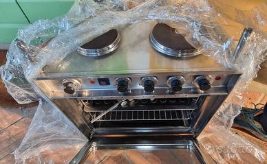 Cucina Alpes da appoggio con forno e piano cottura a piastre elettriche, dotato di piedini antigraffio. completamente in acciaio inox ( esterno ed interno)