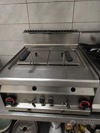 Completa di cappa, tavoli acciaio,tavolo acciaio lavaggio doppia vasca ,friggitrice lotus, fuochi, piastra per arrosti.