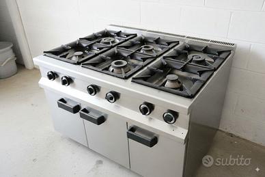 ✅ 1 cucina a gas con 6 fuochi professionali e forno sottostante.